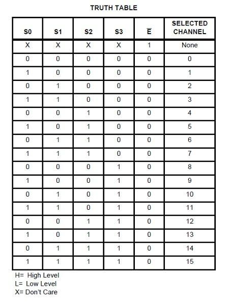 You can see depending on the state of pins S0 – S3 determines the output channel pin that is used. So if S0 to S3 are 0 then Channel 0 which is Pin 9 is selected