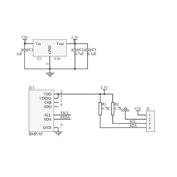 As stated the shield is not a Wemos designed one but is sturdy construction, good quality and comes with a selection of headers that you can solder yourself to it, its an I2C sensor so the shield uses D1 and D2. here is a typical schematic for a bmp180, this shield is similar but without th 3v3 regulator at the top