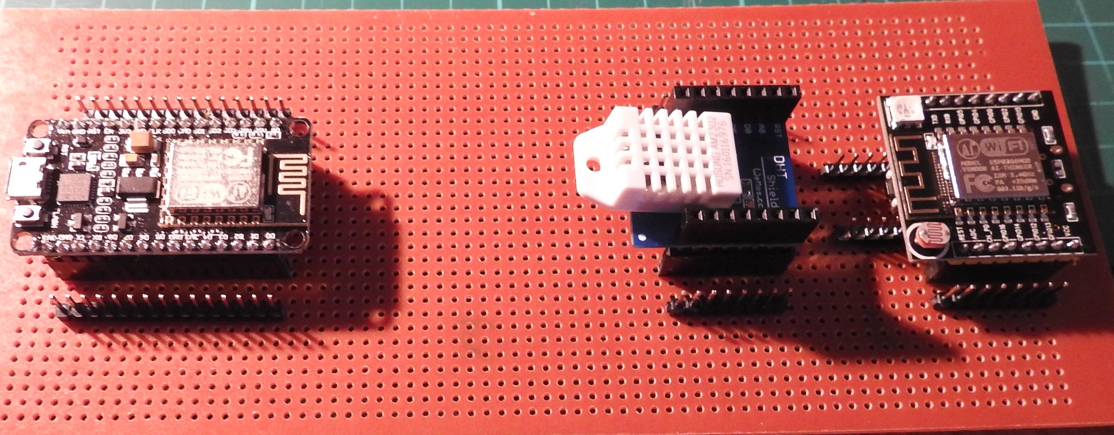 It is not too difficult to create a simple prototyping system, here is a picture of one that I made. From left to right at the moment you can see a NodeMCU v 1.0 dev board, a Wemos MIni DHT22 shield and a board that is commonly known as a WiFi witty cloud development board.
